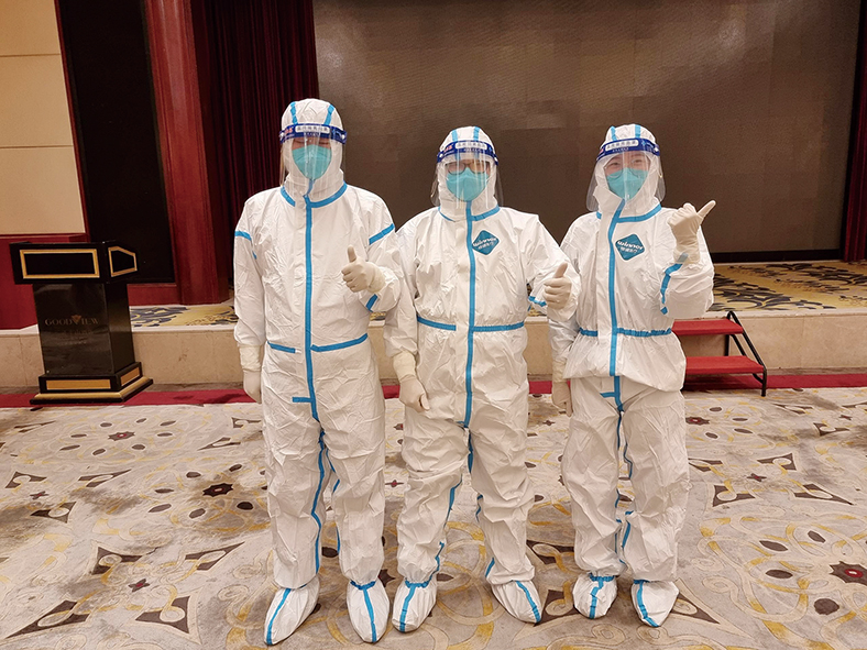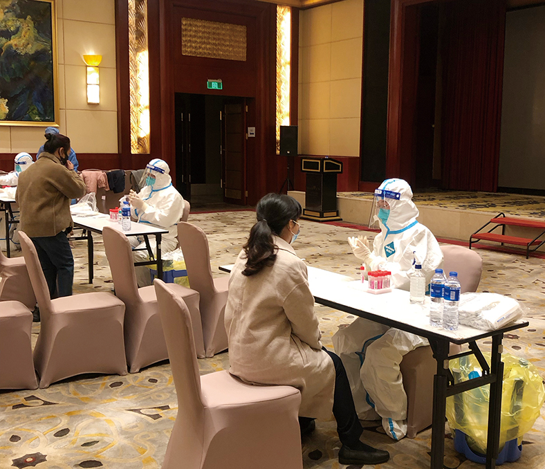 12月15日,經(jīng)過培訓(xùn)后的3名同事自告奮勇做了第一批的采樣人員,幫助酒店全體員工進(jìn)行核酸采樣。