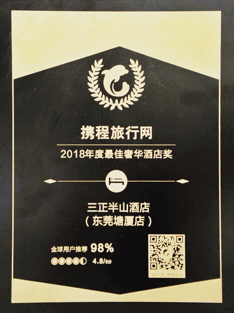 2.塘廈三正半山酒店榮獲“最受歡迎綠色飯店”榮譽稱號。
