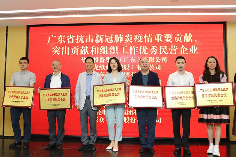 9.4月12日下午,在東莞市工商聯(lián)(總商會)召開的鎮(zhèn)(街道)工商聯(lián)(商會)主席(會長)會議上,廣東省工商聯(lián)副主席、東莞市工商聯(lián)主席、我集團(tuán)董事長兼總裁莫浩棠代表廣東省工商聯(lián),向東莞市被廣東省工商聯(lián)(總商會)評為廣東省抗擊新冠肺炎疫情優(yōu)秀民營企業(yè)和商協(xié)會頒發(fā)了牌匾和榮譽證書。