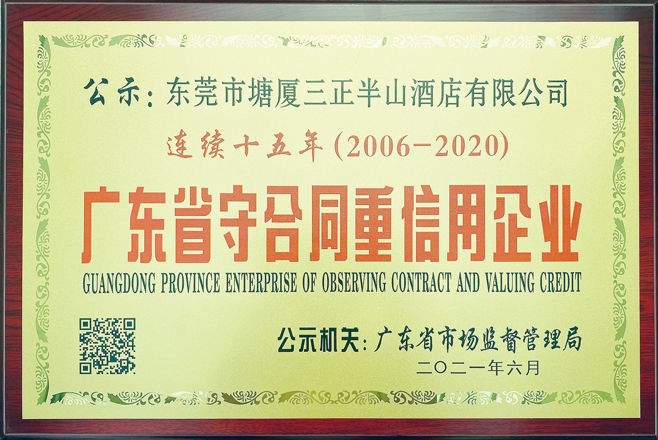 7.塘廈三正半山溫泉酒店: 連續(xù)十五年獲“廣東省守合同重信用企業(yè)”