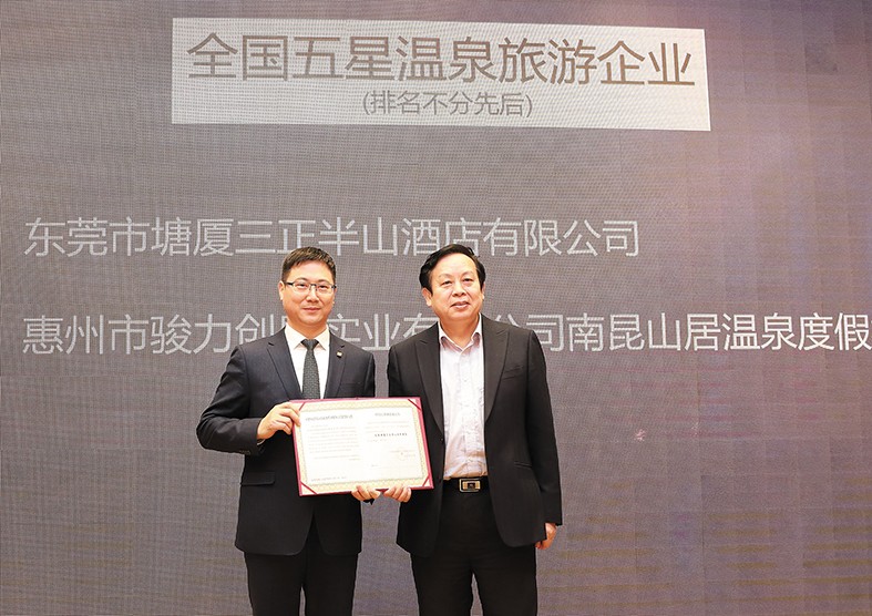 1.12月7日-9日,由中國旅游協(xié)會溫泉旅游分會主辦的第八屆中國溫泉旅游推廣季在海南博鰲隆重舉行?;顒悠陂g,中國旅游協(xié)會溫泉旅游分會特別向包括塘廈三正半山溫泉酒店在內(nèi)的第七批榮膺“全國五星溫泉旅游企業(yè)”的4家單位頒發(fā)了牌匾,“中國五星級飯店”塘廈三正半山溫泉酒店由此也成為廣東首家名副其實的“雙料五星”酒店。