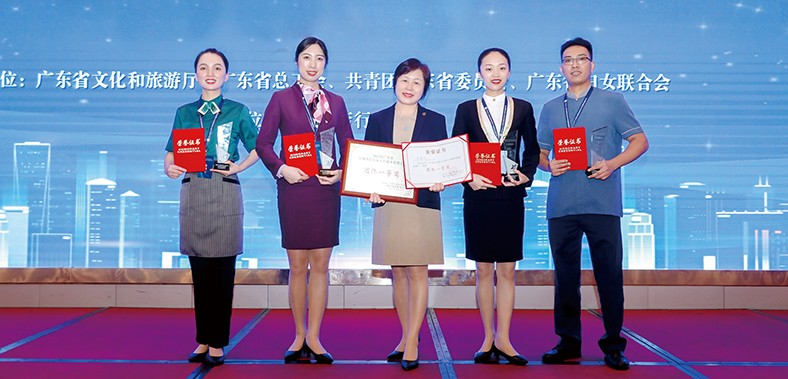 3.9月6日下午,由廣東省文化和旅游廳、省總工會、團(tuán)省委、省婦聯(lián)聯(lián)合舉辦的“2024年全省星級飯店從業(yè)人員服務(wù)技能競賽活動”在廣州圓滿結(jié)束。塘廈三正半山溫泉酒店的周采佩、李定為兩位員工代表東莞市參賽,并憑借出色表現(xiàn)為東莞奪得團(tuán)體三等獎。