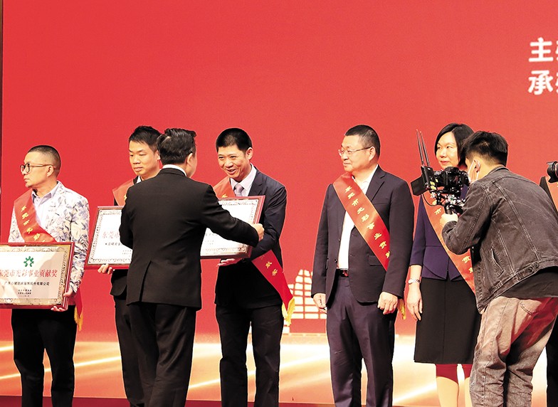 17.2月13日,東莞市以“錨定高質(zhì)量、莞企勇?lián)?dāng)”為主題,舉辦全市非公有制經(jīng)濟(jì)人士優(yōu)秀中國特色社會主義事業(yè)建設(shè)者和光彩事業(yè)貢獻(xiàn)獎頒獎典禮暨高質(zhì)量發(fā)展工商界交流會,致敬東莞市優(yōu)秀建設(shè)者和東莞市光彩獎企業(yè)。我們?nèi)瘓F(tuán)被授予“東莞市光彩事業(yè)貢獻(xiàn)獎”,集團(tuán)董事長助理莫永康代表我集團(tuán)上臺領(lǐng)獎。