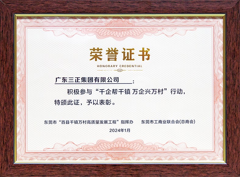 13.1月4日,企業(yè)助力東莞“百千萬工程”對接會召開,會上我集團(tuán)受到表彰,被授予“積極參與‘千企幫千鎮(zhèn) 萬企興萬村’行動”榮譽證書。
