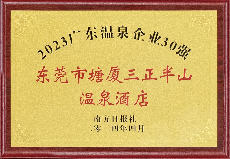 2.12月,塘廈三正半山溫泉酒店入選“2023市級文明旅游示范單位”和“2023 年東莞市文旅體企業(yè)20 強”。