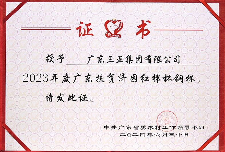 3.廣東省扶貧開發(fā)領(lǐng)導(dǎo)小組授予我集團(tuán)“2011年度廣東扶貧濟(jì)困紅棉杯”銅杯,并頒發(fā)了證書。