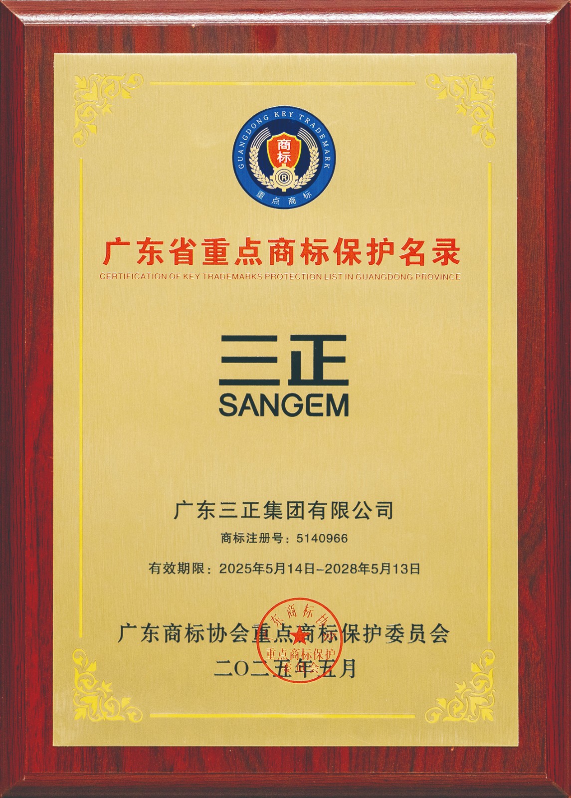 4.8月,廣東商標(biāo)協(xié)會重點商標(biāo)保護(hù)委員會公布了2024年度廣東省重點商標(biāo)保護(hù)名錄的納入名單,我集團(tuán)第36類“三正SANGEM”商標(biāo)脫穎而出榮譽入選。