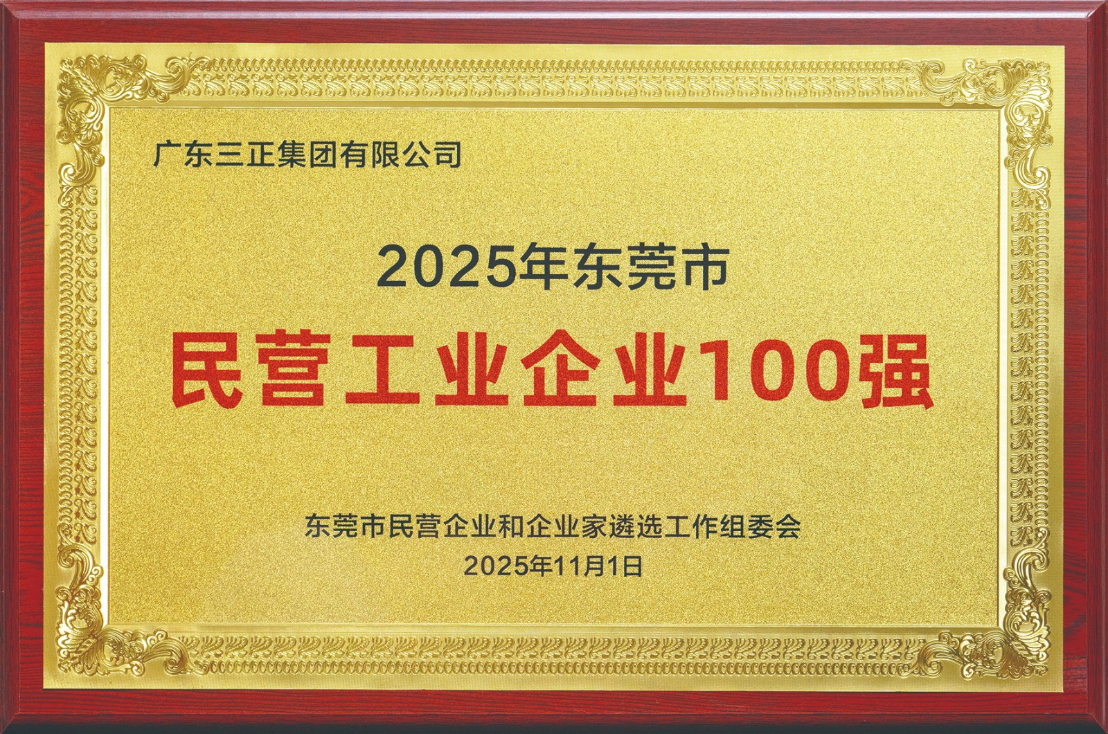 2.11月1日上午,由東莞市人民政府主辦的“莞邑之光 向新而行”2024年東莞民營企業(yè)家日活動隆重舉行。當(dāng)天,晚會現(xiàn)場發(fā)布2024年“東莞市民營企業(yè)100強”“東莞市民營工業(yè)企業(yè)100強”“高質(zhì)量發(fā)展領(lǐng)軍企業(yè)”“東莞市優(yōu)秀民營企業(yè)家”“東莞市優(yōu)秀青年民營企業(yè)家”榜單。我集團(tuán)繼2023年之后,再次入選2024年“東莞市民營企業(yè)100強”,位列第15位。